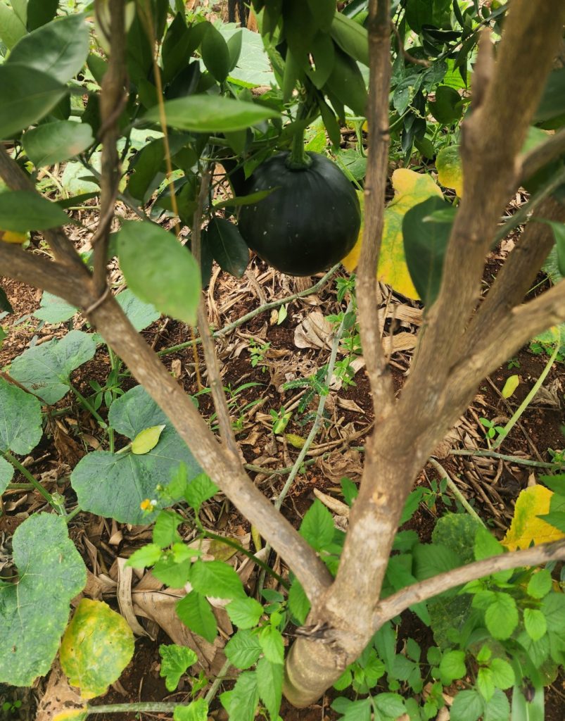A bumper banana harvest left) and pumpkins growing together with oranges (right) at the AIBIS Farm