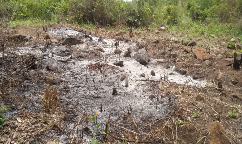 The plot lay in Kirangazi Village, in a remote part of Kalagi‑Masodde Town Council. At first glance, the land looked hostile: gaping ditches where road workers had excavated murram, rocky soil and no visible gardens or a natural water source. Numerous blackened patches where charcoal had been burned were visible. The owner explained that he used to earn some good income from charcoal burners until most of the larger trees were gone. He said that some limited charcoal burning was still taking place on the property but not so profitable anymore. Indeed, we could see places where charcoal had recently been burnt and some of it still on the site. What astonished us was the property seller’s seemingly lack of conscience about the dangers of charcoal burning or his individual responsibility in protecting the environment that he was living in.